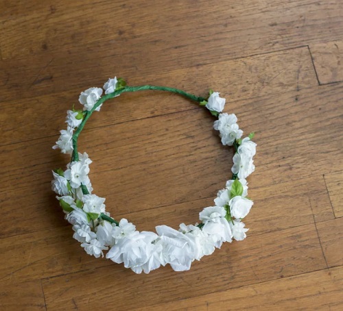 Try this delicate, snow-white floral arrangement if you are planning a romantic winter or spring wedding. It is a perfect lightweight petal-filled headpiece you can have.