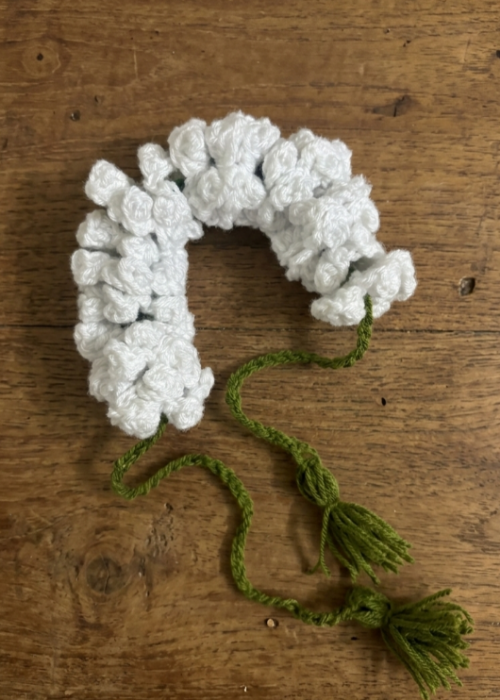 Pristine white and pure, look ethereal with this easy-to-make crochet hair accessory. You can also give it to your friend as a gift!