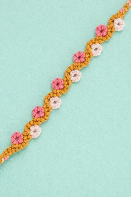 Imagine wearing a field of wildflowers on your wrist with this mustard-colored wavy design. If you do this project, this DIY will help create this delicate piece.
