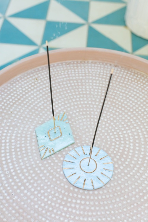 Shape a small, elegant incense holder from clay—simple and functional. You can carve minimal designs or press natural textures like leaves for an earthy look.