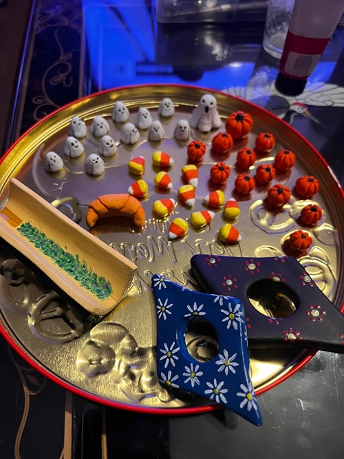 Give your spooky decorations a cute twist! Craft little floral ghosts from clay—decorate them with painted flowers or real dried petals for a fun aesthetic.
