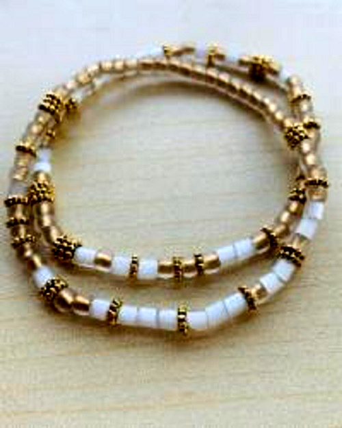 This white and gold coloured Morse code bracelet looks very elegant and timeless. Sneak in your special message with this easy-to-make piece of jewellery.