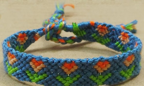 You can stitch this cheerful tulip pattern into friendship bracelets using colorful threads and simple pattern charts from Pinterest inspiration!