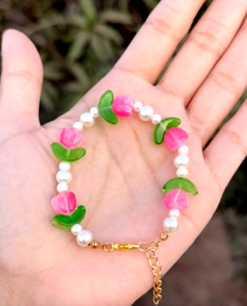 Craft this delicate beaded bracelet using seed beads arranged in tulip shapes for a garden-fresh look. Check the Pinterest idea to pick bead colors and stringing techniques right away!