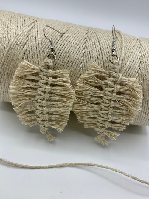 Leaf-inspired macrame earrings that highlight earthy tones and textures. Perfect for plant lovers and boho fashion enthusiasts.