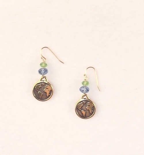 Here is a delicate pair featuring tiny earth charms with sparkling crystal beads that echo nature. The map shapes in this DIY make it look more earthy. Here is more!
