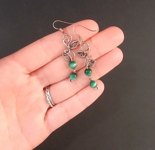Try these earrings with rich green and earthy beads as they combine simplicity with striking natural vibes and great texture. It is easy for beginners with standard beading tools.
