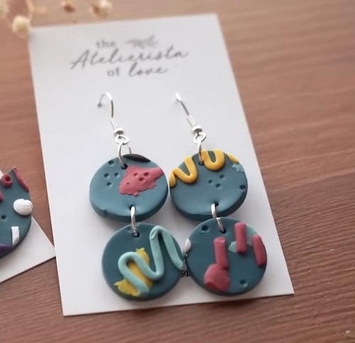 Take help from this idea and create a neutral earth tone earring. It will best pair with any outfit because it is minimalist, versatile, and easy to recreate with clay.