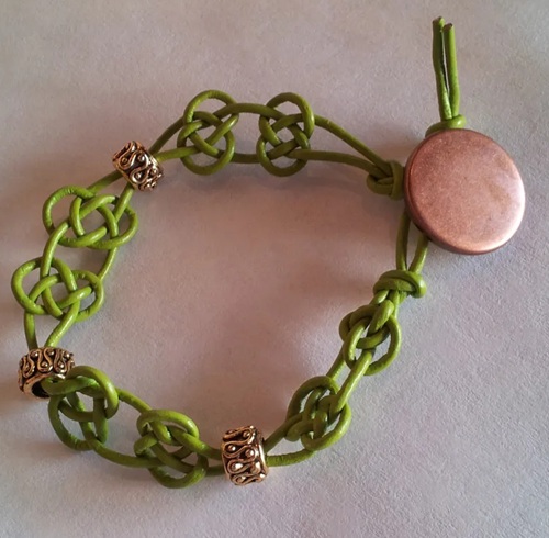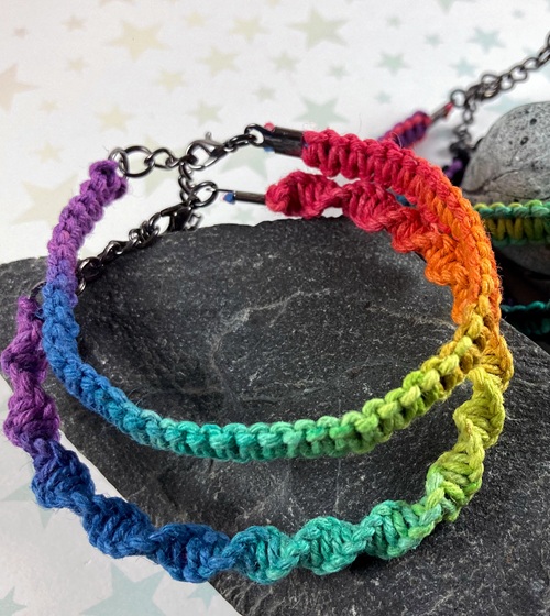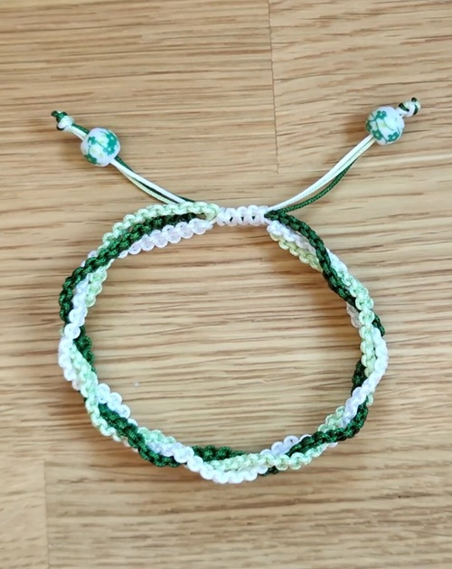 Here, the knots are continuous and interconnected, and are a very beginner-friendly type of hemp bracelet design.