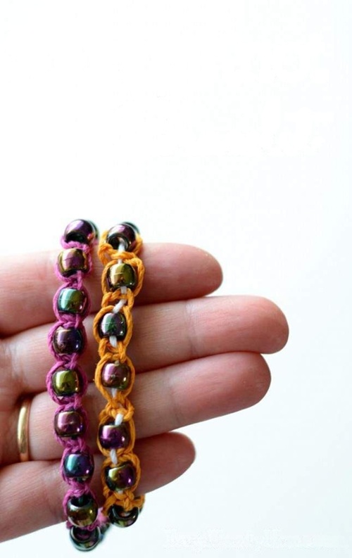 Beads are held strongly by square knots at regular intervals in this variety of bracelets, making them look classy!