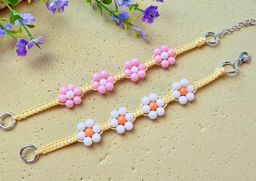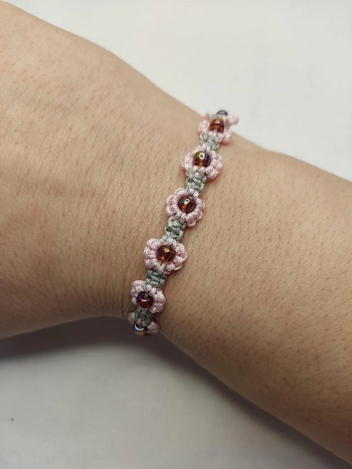 So, you can either do that or this one, where you can add some colorful beads in flower shapes to make a floral macrame bracelet!