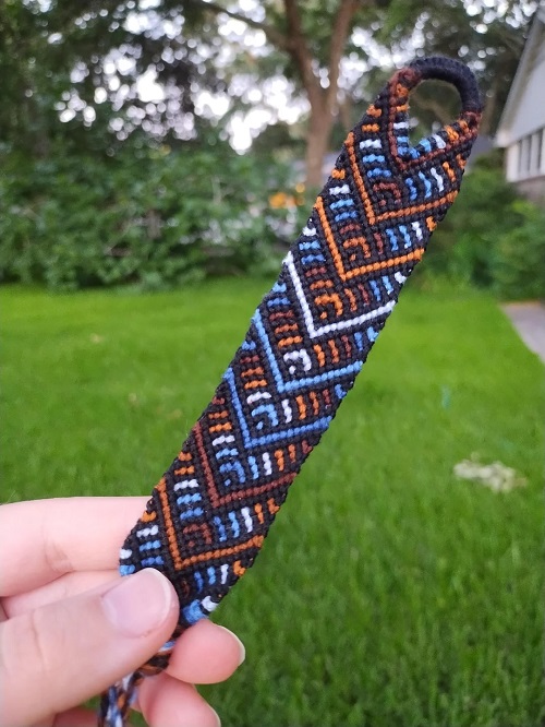 This one looks like a fun twist — a bracelet that wraps around your wrist like a soft handcuff! Use colorful threads to make it funky and unique.