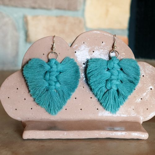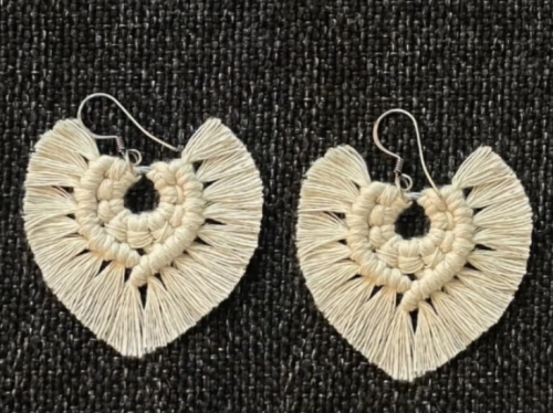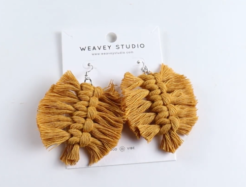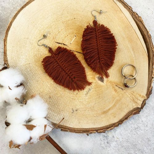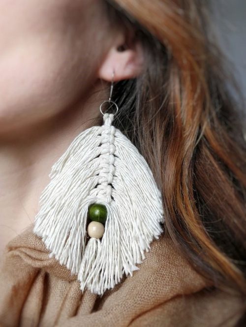 The heart-like shape of this feather earring stands out once you put it on. Definitely make them if you love doing macrame knots.