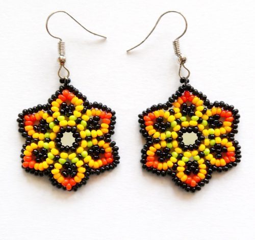 You can make a statement with these bright yellow, orange, and black mandala earrings. It is perfect to bring this vibrant beadwork design to life. Here is more!