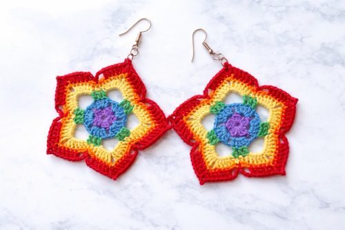 3. Crochet Rainbow Flower Earrings