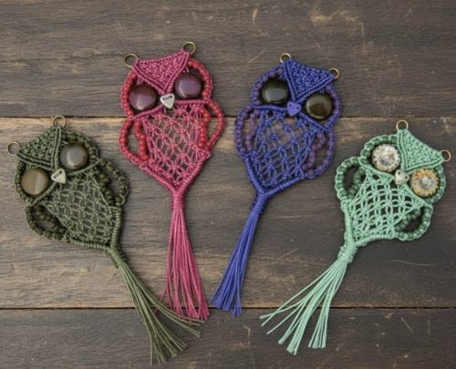Want some micro macrame ideas? If yes, then this set of owl pendants in different colors is what you should go for.