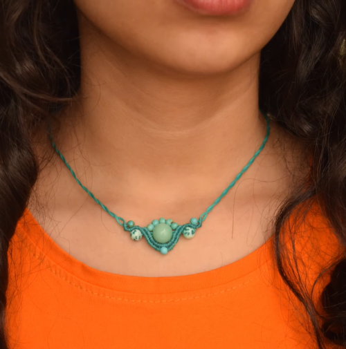 A detailed dyed necklace with easy knots. Simple yet classy, perfect for both everyday wear and special occasions.