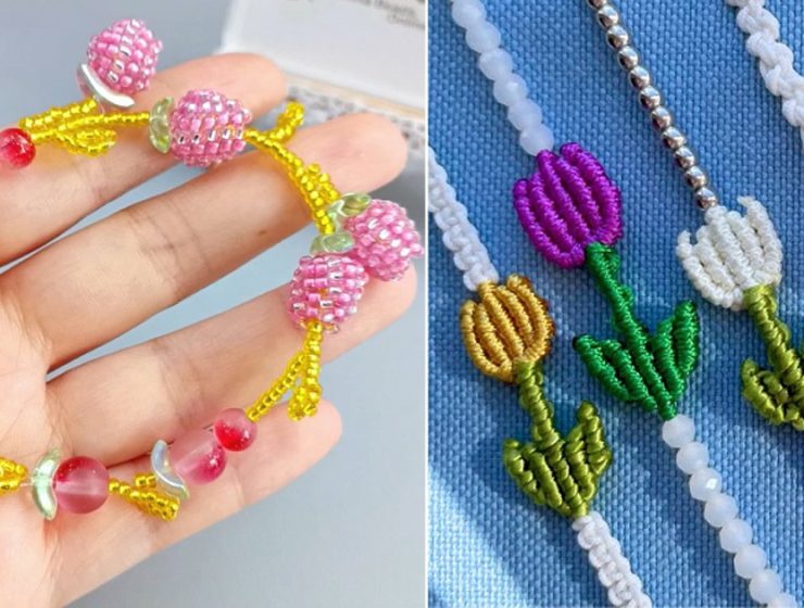 These DIY tulip macrame bracelet designs guide you on how to create delicate floral bracelets…