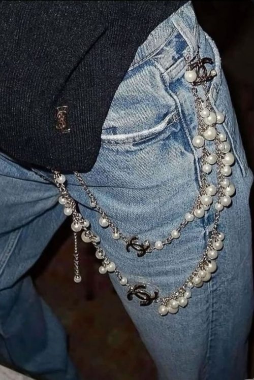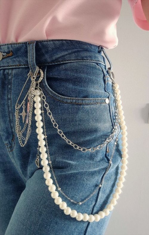 Stop wearing plain denim and transform the whole look with a catchy accessory! Just like these Pinteresty pearl chains for jeans!