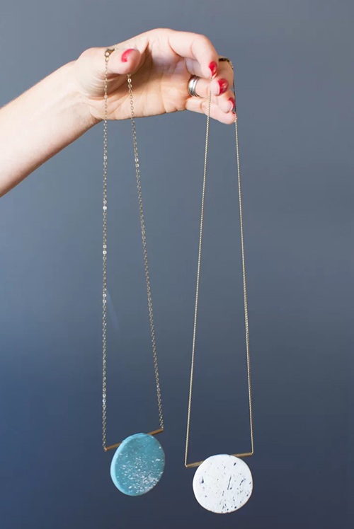 You can easily elevate your style by layering these marbled, circular pendants on delicate gold chains. Let’s craft these minimalist beauties to add a sophisticated vibe to any outfit.