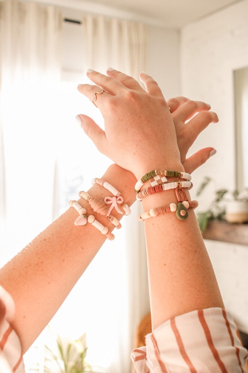 Imagine wearing a wrist full of your favorite things! You can assemble this ultimate “soft girl” aesthetic by mixing clay beads with charms.