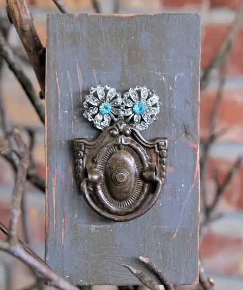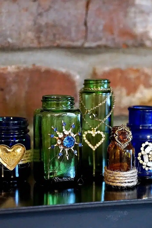 Here is another way of using old jewelry that gives a rustic and vintage vibe. Plus, the blue stones look so pretty.