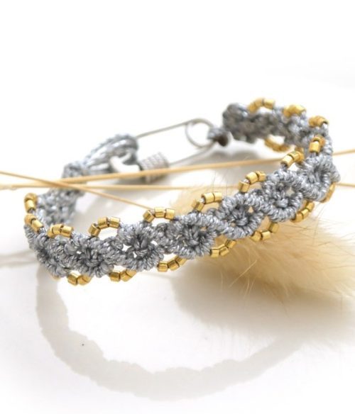 How about making a macrame bracelet that resembles a piece of real jewelry? You would need a silver thread and tiny golden beads for a bracelet like this!