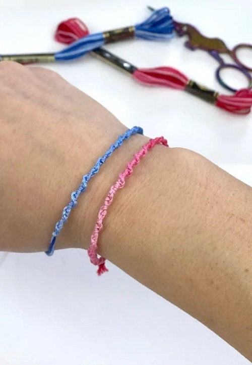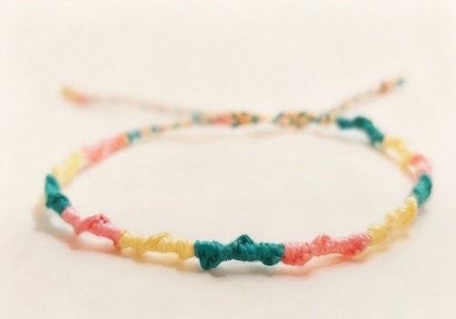 Let’s end this guide with another friendship bracelet that has a sliding, adjustable knot.