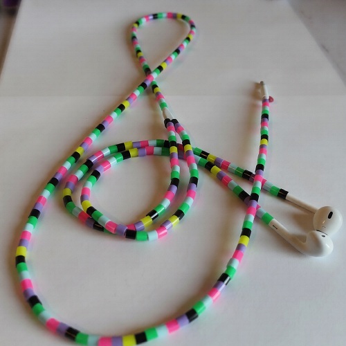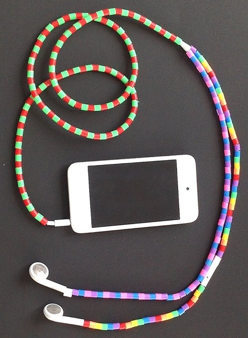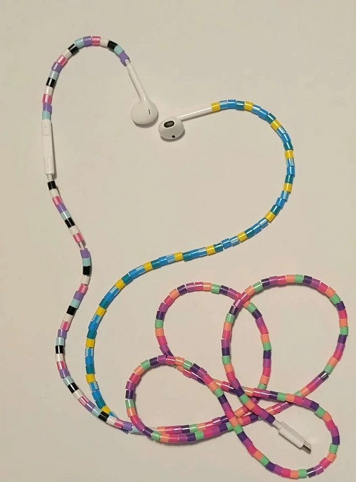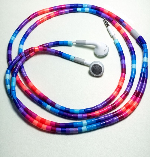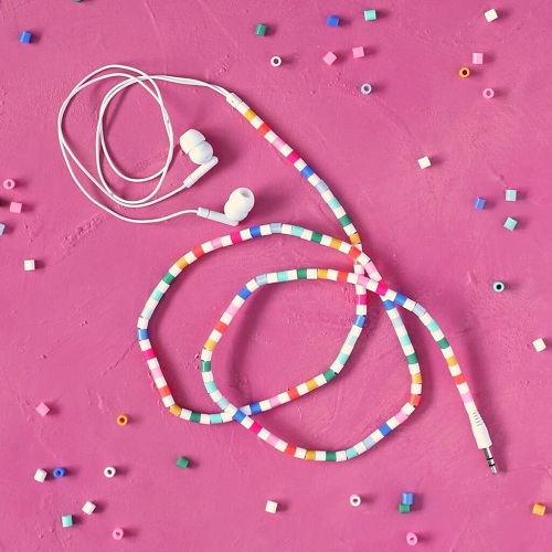 Why settle for boring white cables when you can slide on a spectrum of cheerful, candy-colored beads? Try this DIY for a totally personalized look.