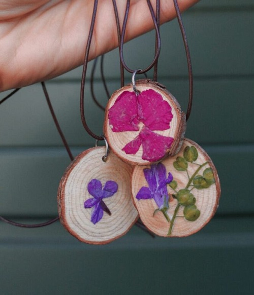 1. Wooden Neckpiece Craft with Pressed Flowers