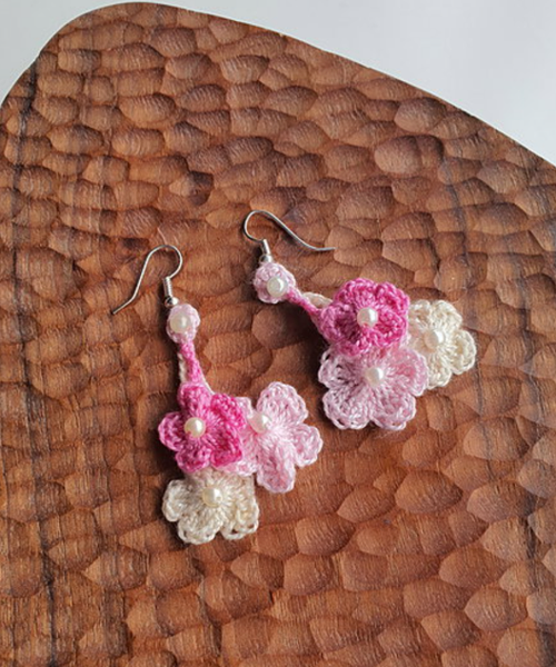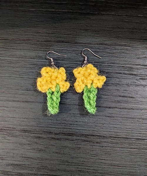 This one is screaming summer in its design! Get creative and knit a beautiful floral earring like the one in the picture.