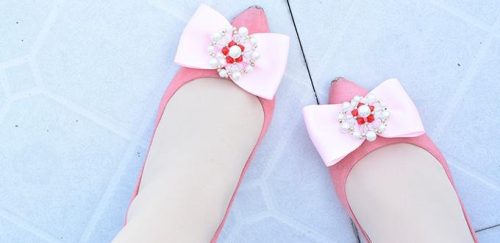 If you love a soft aesthetic, clip a dainty pink bow topped with a pearl flower onto your flats. This quick DIY lets you swap styles instantly for a charming, feminine touch.