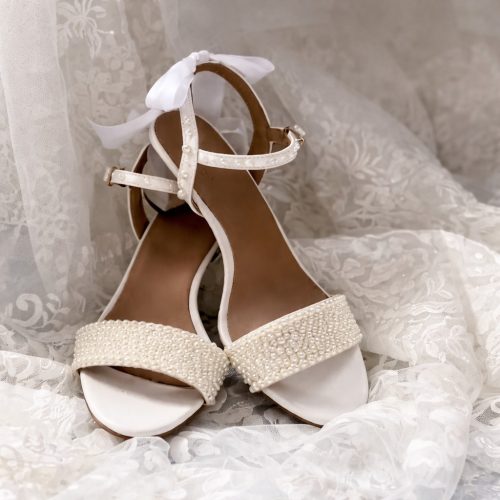 Imagine walking down the aisle in these delicate sandals featuring pearl-studded straps and dreamy white ribbons. You can easily achieve it by following this DIY.