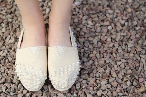 This can be your next special wedding outfit. You have to glue multiple pearls on your favorite flat shoes, and you are good to go.