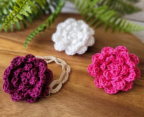 If you love texture, these layered rose motifs give your accessories a full, sculpted look in rich colors. You can try making similar flowers by following this detailed tutorial.