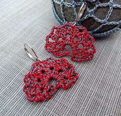 You will love how these spiral earrings blend red and charcoal thread to create a textured look. If you want to stitch your own version, you can follow this DIY.