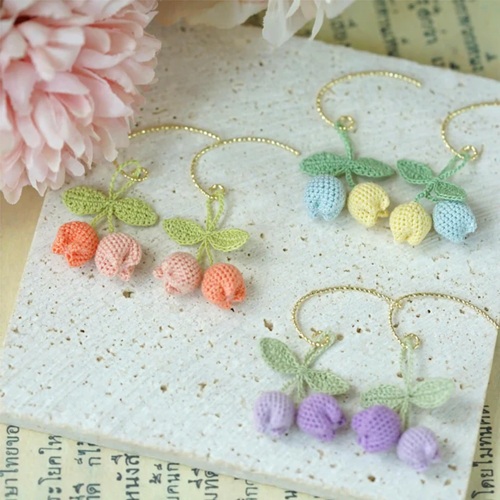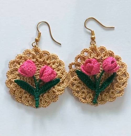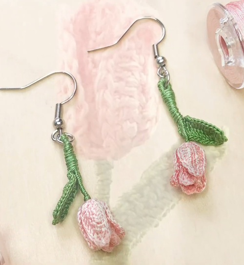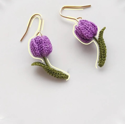 12. Minimalistic Crochet Tulip Flower Jewelry