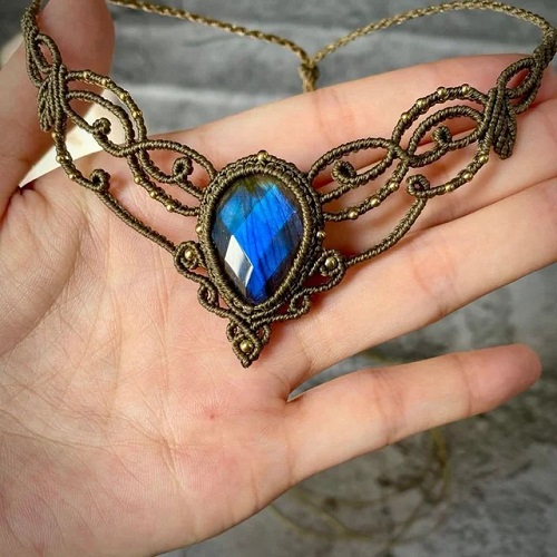 4. Vintage Style Crystal Macrame Neckpiece