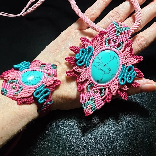 8. Set of Complementing Macrame Necklace and Bracelet