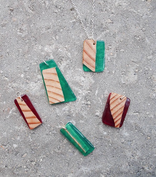 Here’s a simple necklace idea made by combining small wood chips and clear epoxy in a jewelry mold. Check out the complete DIY here.